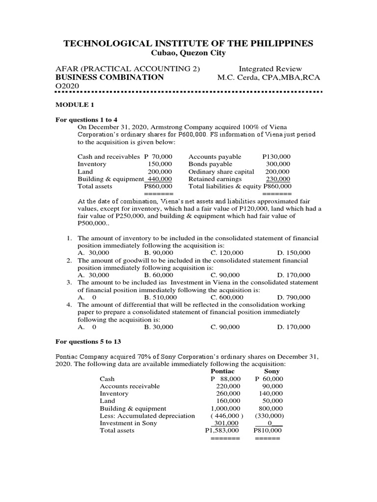 Business Combination PDF Book Value Retained Earnings
